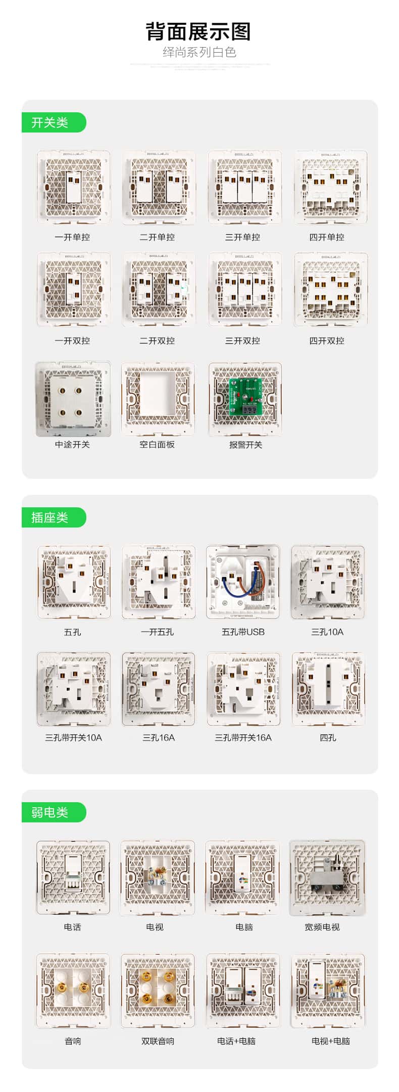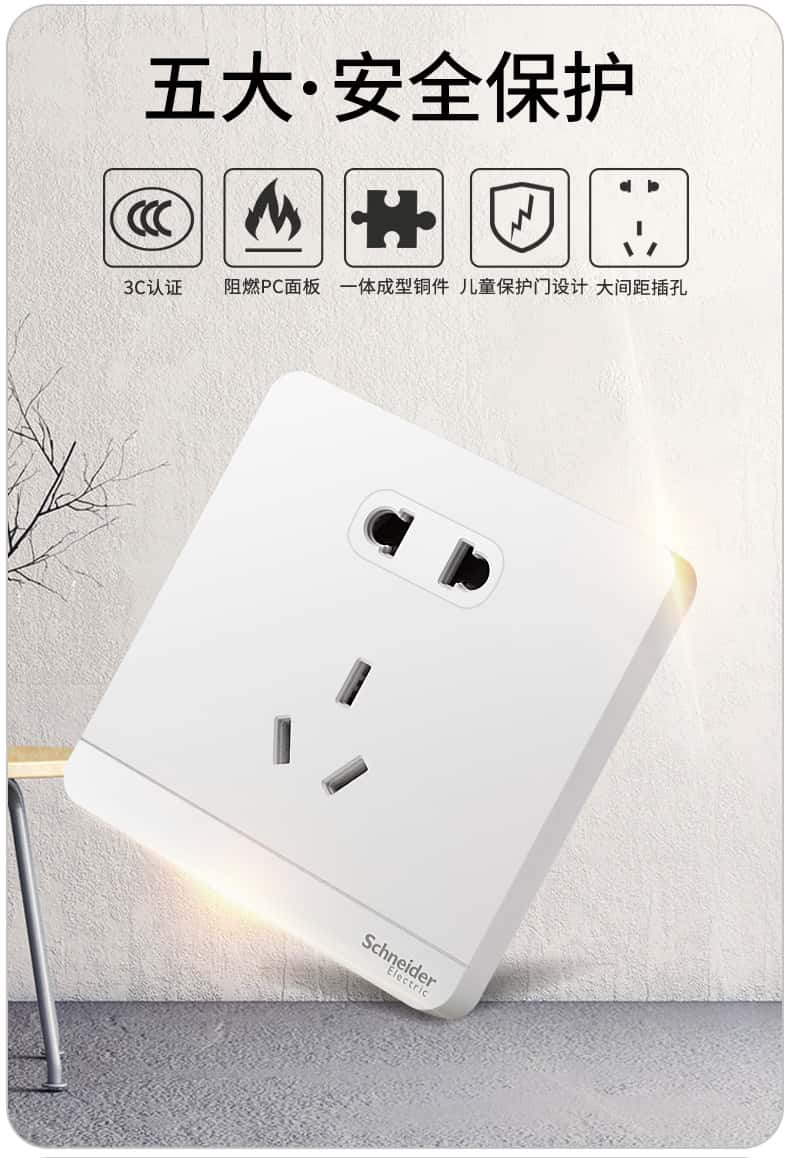 施耐德开关插座绎尚镜瓷白色86型大面板家用墙壁式10A五孔带USB一开双控弱电空调插座
