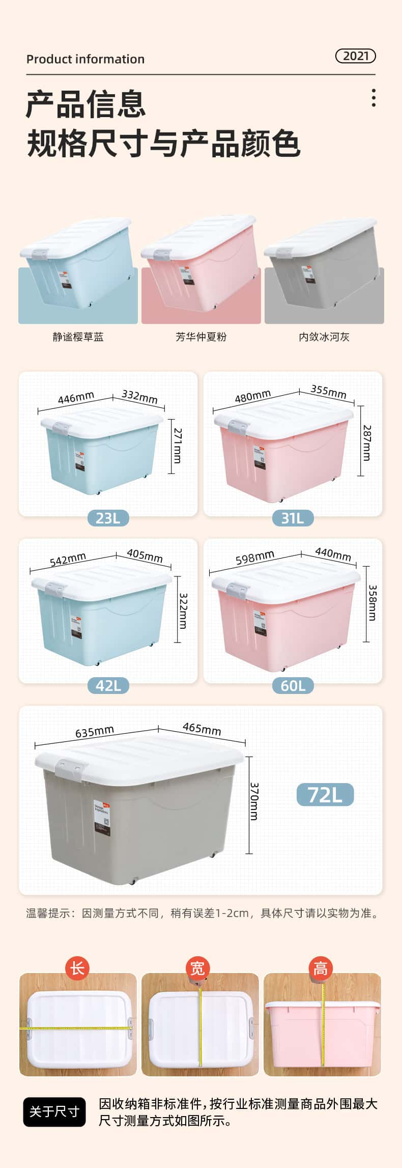 - 颜色分类: 容水量23升一个装(对标友商80#L);44.6*33.2*27.1【带滑轮】 容水量23升两个装(对标友商80#L);44.6*33.2*27.1【带滑轮】 容水量23升三个装(对标友商80#L);44.6*33.2*27.1【带滑轮】 容水量30升一个装(对标友商110#L);48*35.5*28.7【带滑轮】 容水量30升两个装(对标友商110#L);48*35.5*28.7【带滑轮】 容水量30升三个装(对标友商110#L);48*35.5*28.7【带滑轮】 容水量42升一个装(对标友商120#L);54.2*40.5*32.2【带滑轮】 容水量42升两个装(对标友商120#L);54.2*40.5*32.2【带滑轮】 容水量42升三个装(对标友商120#L);54.2*40.5*32.2【带滑轮】 容水量60升一个装(对标友商120#L);59.8*44*35.8【带滑轮】 容水量60升两个装(对标友商120#L);59.8*44*35.8【带滑轮】 容水量60升三个装(对标友商120#L);59.8*44*35.8【带滑轮】 容水量72升一个装(对标友商170#L);63.5*46.5*37【带滑轮】 容水量72升两个装(对标友商170#L);63.5*46.5*37【带滑轮】 容水量72升三个装(对标友商170#L);63.5*46.5*37【带滑轮 钜划算三件套【23L+31L+42L】 钜划算三件套【31L+42L+60L】 钜划算三件套【42L+60L+72L】